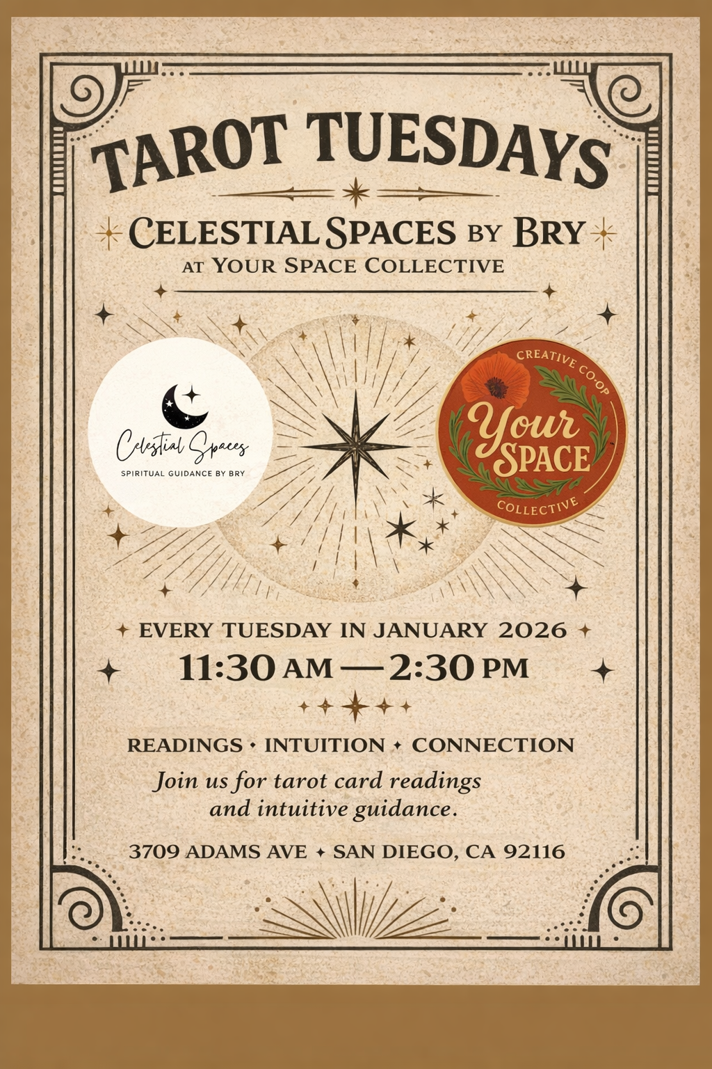 I’m Bry with Celestial Spaces and I created my tarot + astrology business about 2 years ago to help people connect with their intuition and inner self. I utilize my spirituality to be a guide by sharing empowering and insightful messages through tarot and astrology birth chart readings. My readings helped give me the clarity I needed to navigate different parts of my life and I hope they do the same for you!